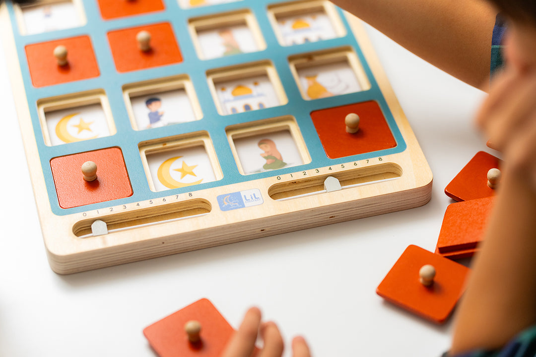 Help your child build focus and concentration with the Muslim Memory Game! As they track block placements and recall previous moves, they strengthen attention span and memory retention.