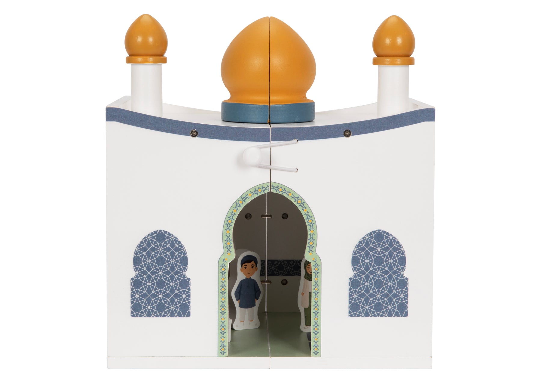 The Mosque Playhouse unfolds from a compact storage box into a beautifully detailed miniature mosque. It features four freestanding, chunky wooden figures, a Rihal, and a movable Mimbar, two magnetic minarets, two magnetic domes, a prayer hall, and carefully designed Islamic details that invite children into imaginative role play. When playtime is over, the entire playset folds neatly back into its box for easy storage β making it a practical Islamic toy for homes of any size. No batteries, no screens β just open-ended, faith-filled play.